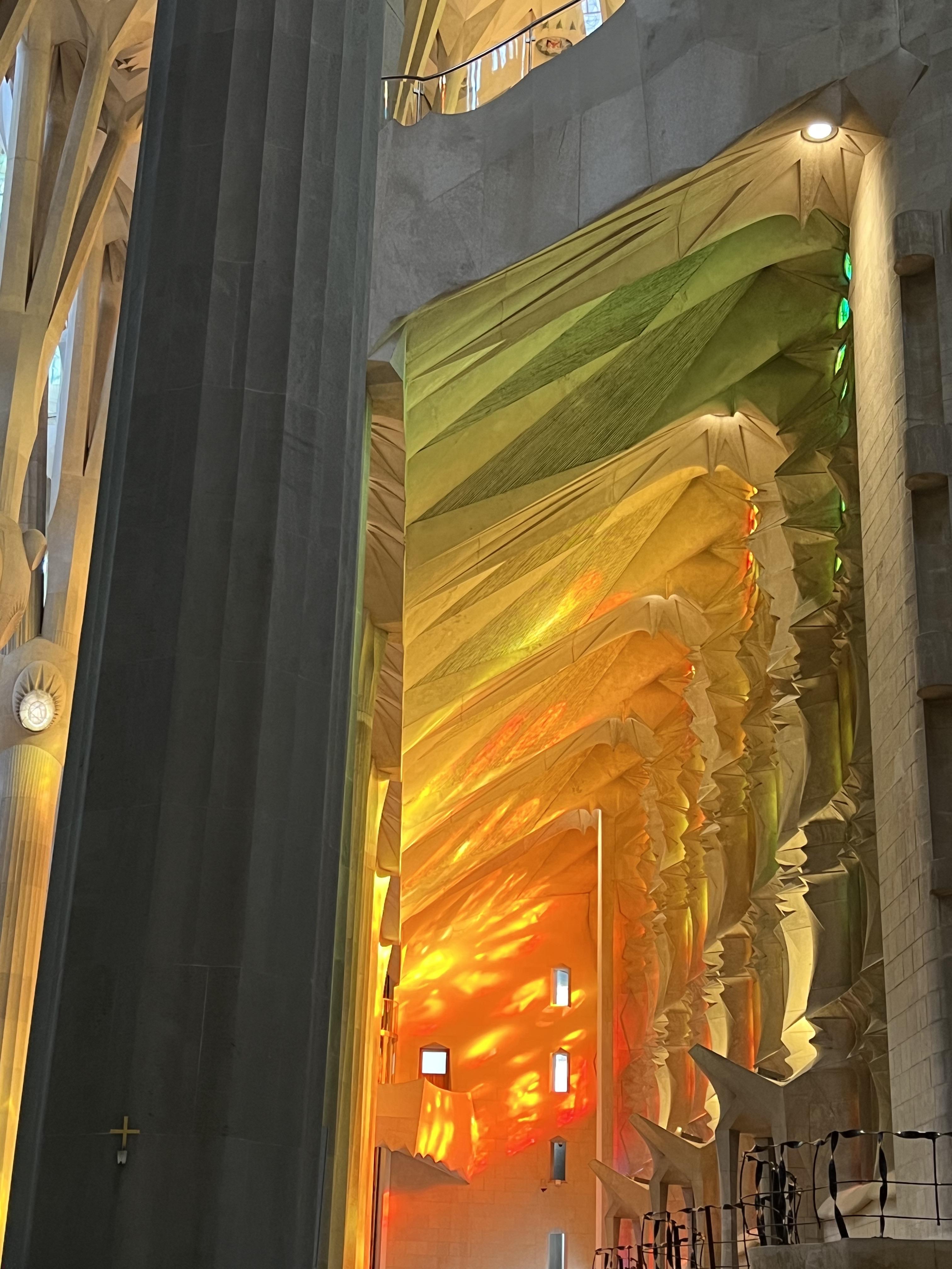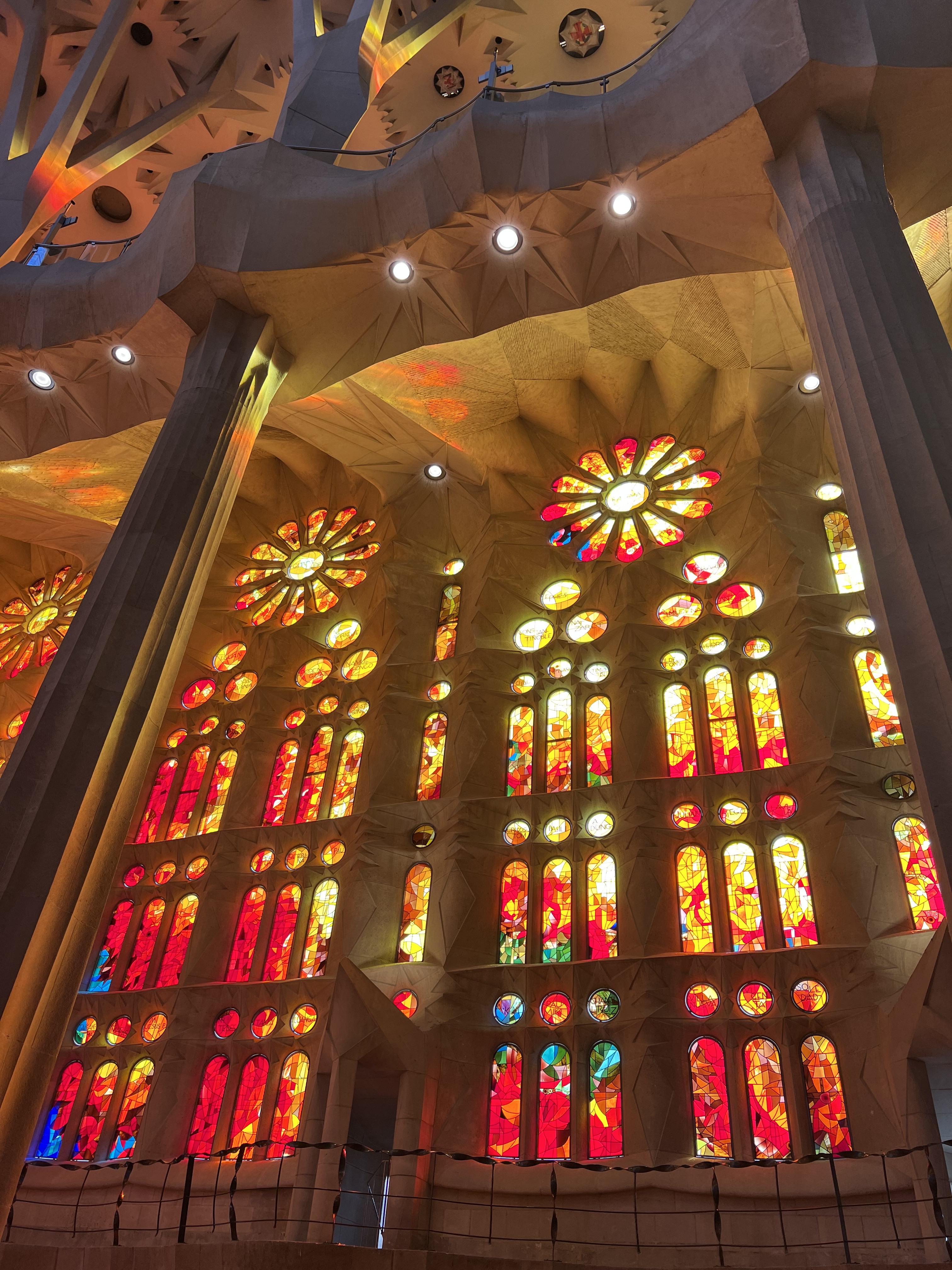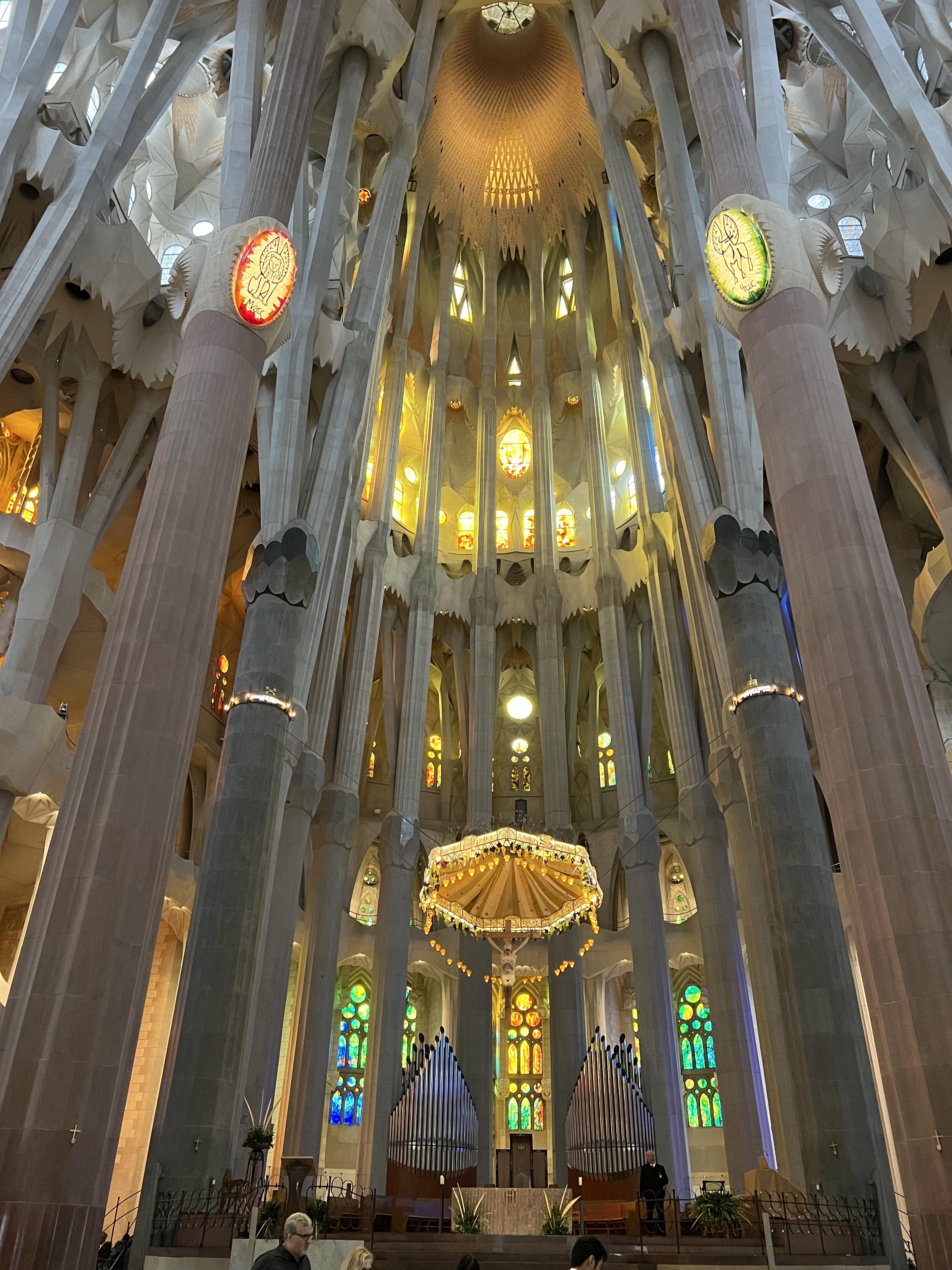 숲을 연상시킨다는 설명처럼 높은 천장으로 뻗은 기둥들, 빛으로 가득한 성당의 벽들 너무나 멋진 경관이 펼쳐졌습니다. 양쪽의 벽 스테인드글라스에서 들어오는 찬란한 빛들로 성당안은 더욱 아름답게 빛나고 있었습니다.